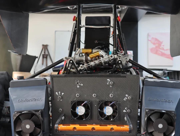 DRe21 是一台单座大学生电动方程式赛车,由同济电车队百余名队员共同打造。新车在结合历代设计的同时融入了诸多创新元素。DRe21 整车采用碳纤维单体壳结构,辅以碳纤维空气动力学套件让整车质量来到了195kg,相较上一代减重 5%;动力方面采用四轮独立轮毂电机,可在规则限制 80kW 的功率限制下达到 450 马力 / 吨的等效推重比,还可以在主控程序的加持下完成动态扭矩分配、驱动防滑及制动能量回收;底盘部分的解耦悬架和多处衍生式设计结构也十分亮眼。